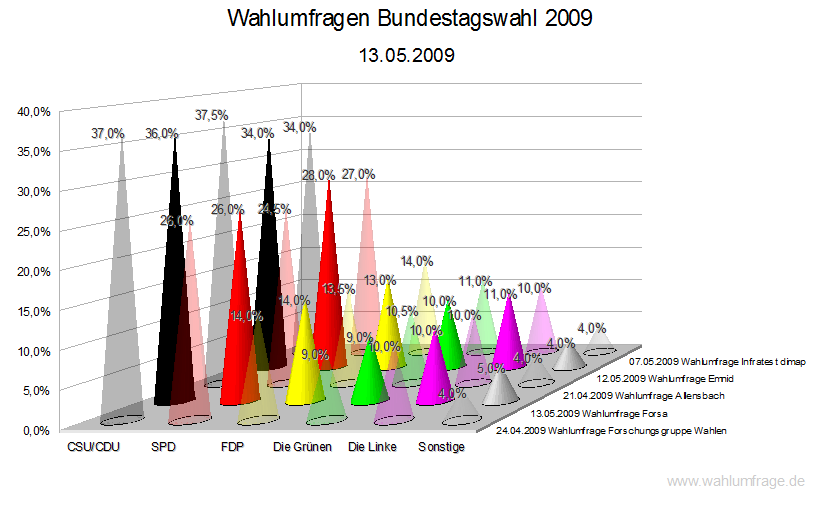 | Quelle: | 13.05.2009 Wahlumfrage Forsa | 12.05.2009 Wahlumfrage Emnid |
