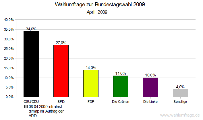 | Quelle: | 08.04.2009 infratest-dimap im Auftrag der ARD | Alte Bundesländer (West) | Neue Bundesländer (Ost) |